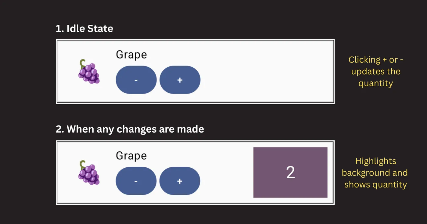 Hereās what the UI for a single fruit item looks like: