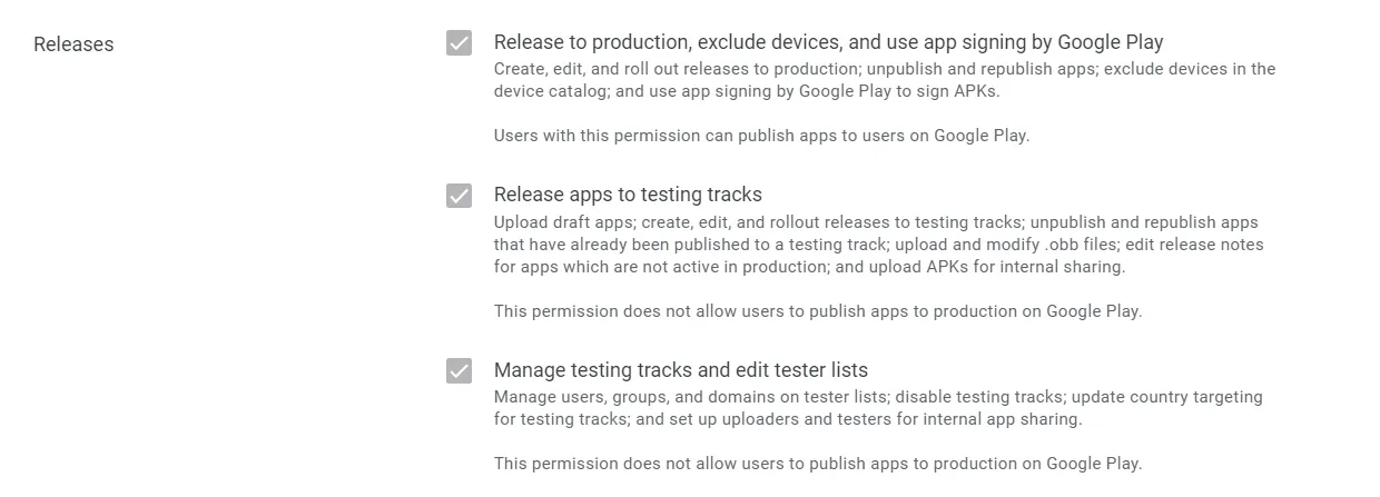 - Click “GRANT ACCESS” → Select the application which you want to allow to publish → Make sure you’ve checked ‘Releases’ section.