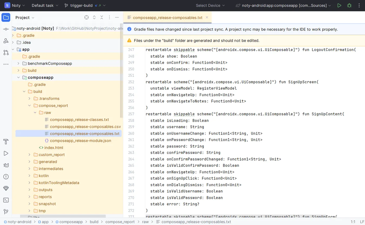 Compose Compiler report is generated: .../noty-android/app/composeapp/build/compose_report/index.html
