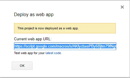 - Finally, you’ll get a window like this with the Web app URL. Copy that Web URL for a reference. We’ll use this URL for making HTTP GET requests from our flutter app.